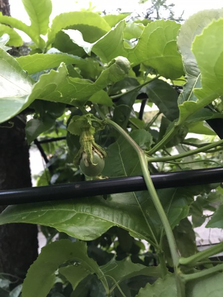 5年ぐらい前?に、隣の喫茶三和の、マスターに、分けてもらったパッションフルーツです。家内が頑張って今年も、身が鳴りました。食べるのが楽しみです。